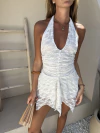 Vestido confeccionadoen encaje, asimétrico con volados. Elastizado.